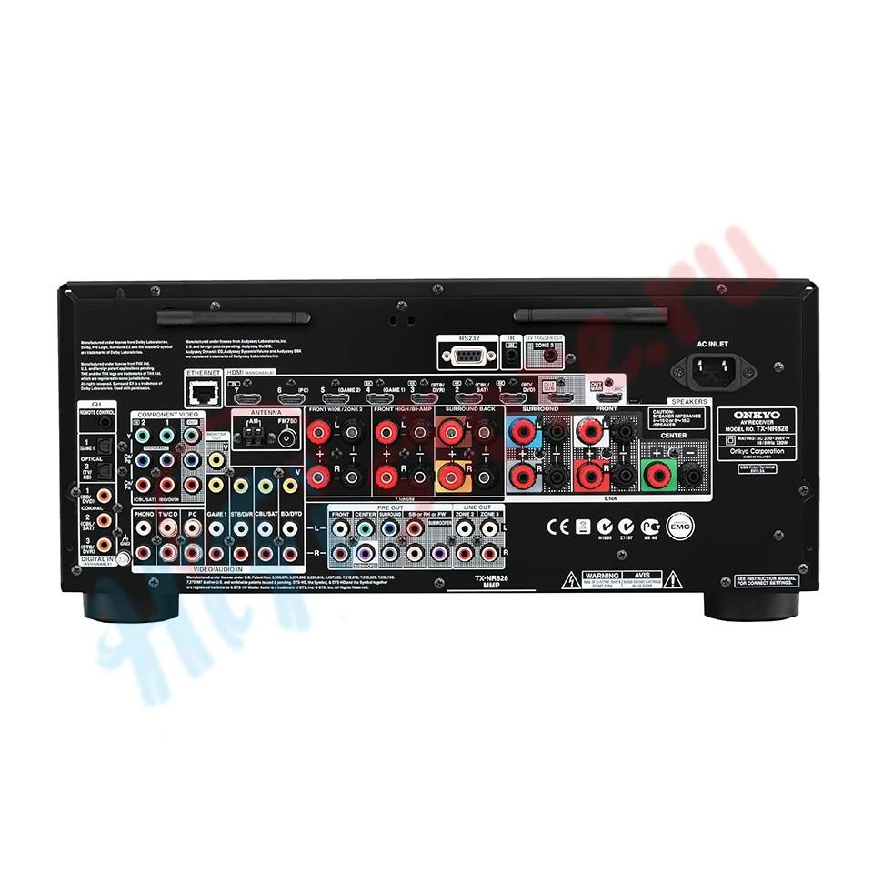 Четыре из семи входов HDMI, расположенных на тыльной панели, поддерживают видео в разрешении 4K, в том числе в «сквозном» режиме. Технология Marvell Qdeo выполняет апскейл входящего видео до 4K. На борту AV-ресивера работают 32-битный DSP и ЦАПы Burr-Brown (24 бит/192 кГц). Onkyo TX-NR828 оперирует со всеми основными кодеками, а поддержка Audyssey DSX и Dolby Pro Logic IIz позволяет подключить верхние и боковые фронтальные каналы, которые поможет настроить автокалибровка Audyssey MultEQ.